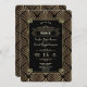 Glamorous Art Deco Excelente Gatsby style design. Apresenta o estilo Art Deco, forma falsa de folha de ouro e ornamentos, num fundo preto. Use a ferramenta Personalizar para adicionar suas informações. Para obter itens correspondentes, visite minha Coleção de Estilos de Gatsby Preto/Branco do Art Deco.