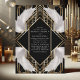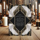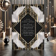 Este elegante Convite para Casamento de Penas Negras e Douradas de Arte Exude glamour e sofisticação vintage. Apresentando um fundo negro luxuoso adornado com quadros geométricos de ouro e penas brancas e suaves, este design traz um toque de charme inspirado em 1920. Ideal para casais que buscam um tema clássico de casamento inspirado em Gatsby, este convite irradia opulência e estilo. Deixem os vossos convidados entrar numa era de elegância e romance com esta maravilhosa design de arte.