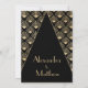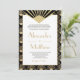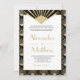 Volte ao Excelente Gatsby Roaring Twenties com um convite de casamento personalizado ao estilo Art Deco preto e dourado. Mude facilmente as informações para as suas. Lá atrás estão os nomes da noiva e do noivo.