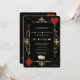 Por 10, 25, 50 anos Celebração de Casamento. Casino único Royale, design de cartão temático 20s. Apresenta o estilo antigo da arte deco, a velha Hollywood de 1920, o par de dados, os trajes de jogo, o fundo de Deco de Arte Dourada. É utilizada uma redação especial no jogo de pôquer. Use a ferramenta Personalizar para adicionar suas informações. Para mais, visite, por favor, minha Coleção Casino.