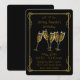 Este convite apresenta óculos de champanhe com letras p-a-r-t-y dentro. Fundo preto e uma borda de arte deco.