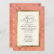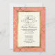 Folha de ouro (faux, de uma fotografia) e ajustados de fundo com cor d'água à mão, um estilo de casamento muito tendencioso e elegante que está em tendência para 2016 e além. Isso é configurado para um Convite de festas Chá de panela e tem um texto de escrita de caligrafia manual com espiral elegante floresce para adicionar um toque de elegância. O coral brilhante se inclina em direção à laranja com um pouco de rosa. É uma lavagem de fundo de aquarela que foi pintada manualmente por Audrey Jeanne Roberts. Seus detalhes de convite são facilmente trocados usando os campos de modelo e há um conjunto completo de produtos para coordenar o fazer lançando um chá um pedaço de bolo!