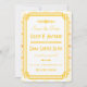 Esses cartões de salvar a data apresentam uma paleta de cores branca e dourada, uma moldura geométrica, padrões geométricos e outros detalhes estilísticos, todos inspirados no Art Déco e nos loucos anos 20. Você pode personalizar os campos de texto de exemplo ao seu gosto.