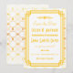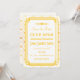 Esses save the dates apresentam uma paleta de cores branca e dourada, uma moldura geométrica, padrões geométricos e outros detalhes estilísticos, todos inspirados no Art Déco e nos loucos anos 20. Você pode personalizar os campos de texto de exemplo ao seu gosto.