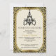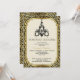 Art Deco chandelier black, casal de ouro convite para chás com um candelabro preto, uma fronteira no estilo Art Deco e um damasco floral preto e ouro em bege/névoa. Este elegante design é uma abordagem moderna a um estilo vintage/retro que se assemelha ao estilo Roaring 20 e The Excelente Gatsby. Faz parte de um casamento e é completamente personalizável.