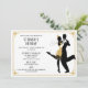 Volte no tempo e faça jazz na sua comemoração de aniversário com esses convites de aniversário Gatsby, que comemoram 20 anos. Perfeito para qualquer um que ama o fascínio e o glamour do 1920, este convite dá o tom para uma festa temerária que certamente será o joelho da abelha. Cada convite apresenta um elegante design preto e dourado que captura o espírito opulente da era Gatsby. Uma silhueta impressionante de uma flapper dançando com um cavalheiro apper adiciona movimento e entusiasmo ao layout, apontando para a diversão e dança que esperam os convidados. Um quadro deco de arte ouro rodeia os detalhes da festa de forma bela. Os detalhes da festa são estilhaçados em fontes chic que complementam o tema da safra. Adicione um código opcional de vestimenta, encorajando os hóspedes a fazerem seu melhor trajar de 1920 por uma noite de sofisticação e revelação. O padrão de deco de arte dourada no verso fornece um toque luxuoso. Esses convites são ideais para dar um tom festivo e de alta energia. Mande-os embora e prepare-se para uma noite onde você pode festejar como se fosse 1929!