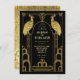 Convites Art Deco Festa de aniversário Pavão Dourado e Pret