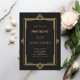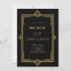 Para uma elegante celebração de aniversário do estilo Gatsby 50th (ou qualquer idade). Um fundo preto decorado com uma estrutura de estilo deco de arte ouro. Personalize e adicione seu nome e detalhes da festa.