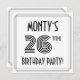 The front of this stylish and Roaring Twenties inspired twenty-sixth birthday party invitation card design features a personalized name, a fancy art deco style inspired number “26th”, the message “BIRTHDAY PARTY!”, and a border pattern consisting of lines. The back features personalized details about the event, such as the date, time, venue/place, and any other information that may be useful. Stylish, elegant, customized invitations like these might be used to invite attendees/guests to a birthday party being held to celebrate somebody’s 26th birthday. [~Z0000614]