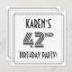 The front of this elegant and 1920s/1930s style inspired forty-second birthday celebration/party invitation card design features a custom name, a fancy art deco style inspired number “42nd”, the message “BIRTHDAY PARTY!”, and a multi-line border. The back features personalized details about the event, such as the date, time, venue/place, and any other information that may be useful. Stylish, elegant, editable invitations like these might be used to invite attendees/guests to a birthday gathering/party being held to celebrate somebody’s 42nd birthday. [~Z0000614]