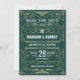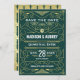 Crie seu próprio design ao estilo Deco de Arte, Excelente inspirado em Gatsby, com ornamentos abstrato geométricos e padrão em ouro com fundo verde-escuro. Um elegante, elegante, neutro em relação a gêneros, design perfeito para a temporada inteira para casais discernentes que querem algo diferente dos habituais suites de papel de casamento feminina, floral e pastel. Excelente também para casais retrorreflectores que apreciam o mundo artístico infuso de jazz nos anos 20. Verifique a coleção correspondente para ver a suíte inteira.