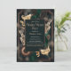 Throw a glamorous holiday whodunit! This speakeasy-style invitation features an Art Deco black-and-gold frame, champagne coupes and bottles, emerald ribbon, and vintage “clues” for a moody, 1920s vibe—perfect for a Murder Mystery Christmas party or cocktail dinner.