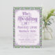 An elaborately detailed Art Nouveau wedding invitation featuring a pattern of lilac lovebirds and lavender butterflies in profile perched atop scrolling vines of purple thistle on a light green and cream dotted background. A pairing of elegant fonts has been carefully selected to accompany this invitation's decorative floral announcement text, however, they can be changed to meet your needs. You can also change their colors, as well as the color of the announcement text.