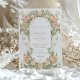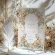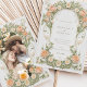 Este elegante convite para o casamento apresenta um clássico design Art Nouveau adorado com um lindo ranúculo de pêssego e uma luxuosa folhagem verde. A frente do cartão mostra padrões florais complexos entrelaçados com um trabalho de rolagem gracioso em tons de pêssego, verde e creme macios. O design detalhado cria uma atmosfera eterno e romântica, perfeita para uma sofisticada celebração de casamento. O verso do convite continua o tema floral, destacando a data do casamento com um arranjo de ranúnculo e folhas. Ideal para casais que buscam uma mistura de elegância tradicional e encanto artístico, esse convite incorpora a essência do romance e da natureza.