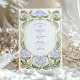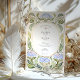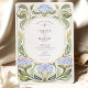 Convide seus convidados com um toque de artista eterno usando este convite de casamento surpreendente do Art Nouveau. O design apresenta uma bela ilustração de hífenes estilizadas em tons de aquarela macios de azul e lilás periwinkle, cercadas por elegantes e giratórias vinhas verdes. Uma sofisticada borda de ouro falsa e trabalho delicado em linha adiciona um toque de luxo, enquadrando perfeitamente seus detalhes personalizados de casamento dentro do espaço central oval. A estética romântica e vintage deste convite é ideal para uma festa de jardim chico, um casamento num local histórico, ou para qualquer casal que procure uma declaração única e artística. Todo o texto, incluindo o monograma, é totalmente personalizável para criar uma primeira impressão memorável para o seu dia especial.