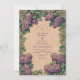 Romântico e eterno, este design de casamento Art Nouveau apresenta flores lilás exuberantes em tons roxos suaves, enquadrado com uma folhagem verde elegante num fundo de colheita. O estilo botânico ornamentado combina a arte clássica com beleza natural, fazer perfeito para casamentos de primavera, cerimônias de jardim ou casais que amam elegância floral com um toque de nostalgia. Totalmente personalizável com seus detalhes pessoais.