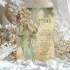 Elevem sua decoração de casamento com este lindo cartão de cardápio inspirado em Art Nouveau, com um motivo lírio etéreo. Esta design dupla face apresenta uma ilustração delicada e romântica de uma mulher adornada de lírios, simbolizando pureza e elegância. A paleta pastel, misturando verduras suaves, cremes e tons de terra mudada, cria uma atmosfera tranquila e sofisticada. Os intrincados detalhes florais e os sotaques evocam um charme vintage, eterno, perfeito para um casamento clássico ou com temas de jardim. O cardápio é apresentado com gosto em uma fonte elegante no verso, enquadrado por sutis elementos decorativos. Uma adição refinada à sua mesa de casamento, trazendo beleza e graça para o seu dia especial.