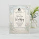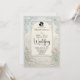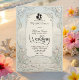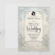 Step into a timeless romance with this enchanted garden design, featuring a soft pastel palette and intricate art nouveau details perfect for fairytale unions.This design employs a sophisticated trompe-l'œil technique to create the visual sensation of depth. The layout features a dusty blue and sage green colorway, framing a central cream space with ornate, swirling scrollwork reminiscent of early 20th-century craftsmanship. At the apex, a delicate silhouette of a couple stands beneath a faint gazebo, while the bottom foreground showcases a cobblestone path strewn with blush pink tulip petals. The typography combines elegant calligraphy for names with a whimsical hand-lettered header, balancing formal structure with storybook charm.This is a flat printed image with a faux 3D embossed relief effect, not actual raised material.