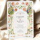 Invite your guests to a celebration as unique as your love with this breathtaking Art Nouveau wedding invitation. This masterpiece design features an elegant archway framed by two large, stylized botanical forms reminiscent of exquisite stained glass. These forms are rendered in a stunning watercolor palette of blues, teals, and greens, with each segment beautifully outlined in faux gold. Delicate, climbing watercolor roses in soft pink and rose hues with verdant leaves intertwine with the arch, adding a touch of classic romance. A graceful gold banner at the bottom provides a perfect accent. The reverse side features a perfectly coordinated design, offering a beautiful space for "The Finer Details" of your special day. This invitation is ideal for an artistic, vintage, or sophisticated garden wedding.