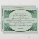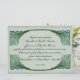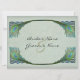 Esta design apresenta um fundo de aparência envelhecida em uma cor de pergaminho com tons verdes com algumas penas de pavão Art Nouveau como borda decorativa. Isto funciona para qualquer estação, formal ou informal.
