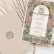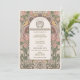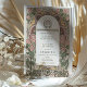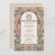 Adotar a elegância eterno da era Art Nouveau com este belamente feito convite para o casamento. A frente do convite apresenta uma mistura harmoniosa de arranjos florais cor-de-rosa-pincel e verde-sábio, circundando um monograma que elegantemente combina as iniciais do casal em tom dourado. Ao contrário, o convite desdobra um quadro atordoante de tons cor-de-rosa, verde-oliva e sujas, detalhado com um intrincado design botânico que enquadra os detalhes essenciais do dia especial. O uso da tipografia clássica de Art Nouveau e sotaques sutis de ouro acrescenta um toque de sofisticação e charme, fazer este convite perfeito para casais que buscam uma mistura de arte clássica e finesse moderno para seu anúncio de casamento.