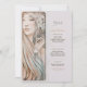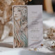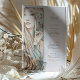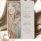 Defina um tom refinado para sua recepção de casamento com este cartão de menu inspirado em Art Nouveau, mostrando uma elegante ilustração de uma senhora enquadrada por detalhes florais fluentes e tons de pêssego e sábio pastel macio. Esta design de estilo vintage destaca a beleza e a sofisticação da arte do 20, com sotaques intrincados e fronteiras ornamentais. A frente exibe um layout requintado para as opções de aperitivo, curso principal e sobremesa, enquanto a parte traseira apresenta um emblema decorativo do "Menu". Perfeito para casamentos de temas antigos, esta carta combina arte clássica com elegância de eterno.