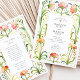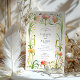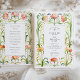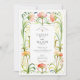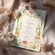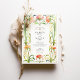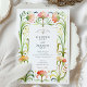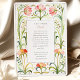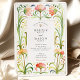 Convide seus convidados com o charme único deste convite de casamento inspirado em Art Nouveau. O design apresenta uma lindíssima estrutura de aquarela pintada à mão de flores silvestres estilizadas em uma paleta quente e alegre de coral, pêssego e vermelho macio. Estas flores vibrantes são colocadas entre caules verdes elegantes, aglomerados semelhantes a bagas brancas, e pontos coloridos que acrescentam ao seu apelo artístico. Uma delicada e brilhante borda de folha de ouro falso enquadra elegantemente a placa inteira e o bloco de texto central, acrescentando um toque de sofisticação. Este convite é uma escolha perfeita para um casamento artístico, jardim ou vírgula vibrante, estabelecendo um tom de elegância alegre.