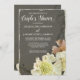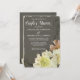 Convidar a festa do Chá Casal correspondente para a noiva e o noivo. O impressionante contraste nas cores faz com que estas flores modernas, pintadas e pintadas à mão, brilhem com luz. Uma cinza de carvão profundo em um flanela quente como a matiz tem um padrão de rolagem retrorreflector muito sutil e espirais de folhas de cinza escura. Uma mistura deliciosa entre uma floral romântica, mas num estilo moderno e contemporâneo. O fundo profundo, rico e quente da cinza de flanela dispara as flores originais do pincushion no outono, paleta colorida de tons brancos mornos, de limão macio e esfregando cor de pêssego coral.