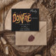 Uma ilustração digital de um convite de festa de formatura de fogueira, renderizado em um estilo laranja e amarelo flamejante, que se assemelha a chamas.