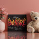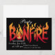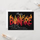 Uma ilustração digital de um convite de festa de formatura com chamas de fogueira Um design gráfico com a palavra fogueira em letras negritas e flamejantes.
