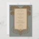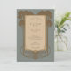 Anuncie seu casamento com eterno elegância usando este convite inspirado na Arte Deco. A design apresenta um painel central com os detalhes do convite, enquadrados por árvores estilizadas e intrincadas escrolhas em tons ricos de ouro e marrom, colocados contra um sofisticado fundo azul-cinza. As árvores lembram-se do período de deco da arte. O verso, para "Os detalhes mais finos", apresenta um layout complementar com a mesma árvore de na moda e elementos de rolagem que enquadram o texto. Esta suíte evoca uma sensação de glamour clássico e charme vintage. É ideal para casais que procuram um anúncio sofisticado, na moda e memorável para o seu casamento, perfeito para uma celebração formal ou de temas antigos.