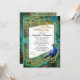 QUALQUER ANO DE FESTA DE ANIVERSÁRIO: "Convite de festa de aniversário Hollywood Glitter Gold Art Deco Peacock". Estilo chique da era Great Gatsby, mas lindamente projetado de uma maneira que o destaca para eventos sofisticados. Esta coleção de casamento foi inspirada no velho Hollywood e na era de glamour de seu auge. Um conjunto de convite de festa de aniversário que é perfeito para eventos e celebrações elegantes, sofisticados, formais modernos ou de gravata preta. Um clássico, belo floreio de pergaminho ondulado em rico azul-teal e aqua fazem parte de um fundo de colagem que destaca o pavão solitário que olha para trás sobre o ombro para o texto do convite. No verso está um conjunto de penas de cauda de pavão, colado junto com closes de penas de pavão e desenhos de penas traseiras. Um layout de texto tradicional para