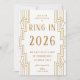 Por favor, verifique o ano. Dólares do estilo Art Deco e Convite de festas branco elegante de Ano Novo. Trabalhos de linha geométrica que lembram ironização com texto em ouro ousado. Todo texto é editável.