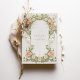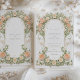 Este elegante convite para o casamento apresenta um clássico design Art Nouveau adorado com um lindo ranúculo de pêssego e uma luxuosa folhagem verde. A frente do cartão mostra padrões florais complexos entrelaçados com um trabalho de rolagem gracioso em tons de pêssego, verde e creme macios. O design detalhado cria uma atmosfera eterno e romântica, perfeita para uma sofisticada celebração de casamento. O verso do convite continua o tema floral, destacando a data do casamento com um arranjo de ranúnculo e folhas. Ideal para casais que buscam uma mistura de elegância tradicional e encanto artístico, esse convite incorpora a essência do romance e da natureza.