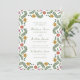Celebre o seu dia de casamento com charme artístico usando este convite de casamento Floral de Arte Popular Caprichosa. O design apresenta os nomes dos noivos e os detalhes do casamento exibidos em letra cursiva suave em verde, combinada com letras serif clássicas, criando um belo equilíbrio entre personalidade e elegância atemporal. Uma borda decorativa de flores de arte popular ilustradas envolve o design, mostrando flores em tons de vermelho, rosa, amarelo dourado e azul, acentuadas com folhagens coordenadas. A moldura floral colorida adiciona um toque distinto, inspirado em contos de fadas, mantendo o layout refinado e fácil de ler. Perfeito para casamentos no jardim, cerimônias ao ar livre e casais que se sentem atraídos por papelaria artística e caprichosa, este convite oferece uma maneira memorável e expressiva de compartilhar o seu dia especial com familiares e amigos