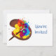 Se você precisa de um convite para um artista na sua vida, este é o convite perfeito. Salpicos de tinta, um pincel e uma paleta.