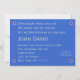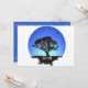 O fundo de prata destaca uma silhueta de árvore com o nome da criança em branco. O fundo corresponde às cores da frente com um fundo azul e uma letra prateada.