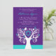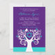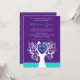 Um púrpura e azul-lacustres da vida Bat Mitzvah convite. Esta design única apresenta uma árvore, flor, pássaros e a Estrela de David.