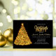 Convites de festas de Natal Modernos personalizados em cores preto, dourado e branco. Fundo em luzes cintilantes com árvore de Natal. Modelo editável - simplesmente adicione seu texto. Todo texto pode ser alterado fonte, cor e tamanho. Perfeito para festa em casa, festas de escritório, festa de janto de férias ou qualquer outra ocasião de inverno.