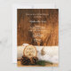 Convide convidados para uma festa pré-casamento honrando a noiva para estarem com o Chá de panela de Bresqueira Rústica natural e de Madeira Barn. Este tema ao ar livre é a floresta personalizada ou o Chá de casamento de inspo florestal Invite apresenta uma fotografia da natureza digitalmente melhorada de um tronco de árvore, dois cones de pínus castanho e galho de pinheiros verdes, fatia de madeira com a palavra LOVE queimada e véu branco de brasa com fundo de madeira marrom. Ideia perfeita para um evento casual de madeira. Disponível como um convite impresso para envio por correio ou como um download digital para fácil compartilhamento digital online.