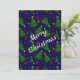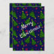Convites Árvore de Natal azul com sinos e flores vermelhas