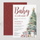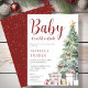 Convite de chá de fraldas personalizável que inclui uma árvore de Natal com uma tipografia de script vermelha.