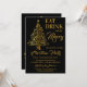 Convidado de Natal ou Festa de Férias Preto e Dourado. Árvore de Natal de ouro elegante com fundo preto com impressão de ouro, e pode ser personalizada.