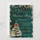 Um convite elegante para festas de férias com uma aquarela de pinheiro de Natal com arco vermelho e estrelas de ouro em fundo verde. Estes belos convites de Natal são perfeitos para convites de festas de janto de Natal, convites para troca de presentes de Natal, angariadores de fundos de Natal, convites para bolas de férias e outros eventos realizados durante o mês de dezembro. Use apenas os campos modelo para adicionar suas próprias informações de evento.