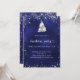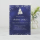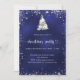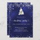 Um convite de inverno para uma festa de Natal. Um fundo azul incolor, decorado com um pinheiro coberto por neve e falso brilho. Personalize e adicione os detalhes da sua festa. Fundo: fundo azul com falso brilho.