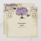 COLOR PALETTE: lavanda, lilás e roxo, chocolate marrom, creme, latte e bronzeado. DESIGN COLLECTION: Trata-se de uma coleção gráfica original de design, criada com pincéis de pontas de folhas giratórias elegantes que rolam e florescem o canto do papel e são as raízes, folhas e ramos da árvore. Parece uma árvore florescendo na primavera e no início do verão. Especialmente legal para aqueles que amam a natureza e a natureza romântica do exterior, a árvore tem um coração no seu tronco. Há um par de pássaros de amor antigos que voam ao redor da árvore do lado da frente. As folhas são uma mistura de daubs de tinta texturizados com padrão de impressão a meio-tom e o giro floresce todo. O padrão de fundo é uma textura antiga, vírgula, de creme e bronzeado. Designs muito sutis estão no jornal de fundo, em branco, e as bordas estão angustiadas, envelhecidas e pintadas em uma borda latta e bronzeada. No verso está uma versão maior da árvore com seus monogramas junto com os nomes da noiva e noiva e a data do casamento.