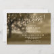 Este cartão de recepção de casamento aconchegante e acolhedor apresenta um fundo de foto alterado e uma fonte moderna de escrita à mão. Editei uma foto de uma árvore em um campo rural para refletir um tom sépia, foco suave e luzes de destaque na árvore, criando um clima etéreo com a atmosfera que sua recepção de casamento ao ar livre pode ter! Em seguida, usando uma fonte moderna manuscrita, criei um gráfico que representa as palavras "Vamos Celebrar!". Seu próprio texto é facilmente adicionado para personalizar este modelo o quanto desejar. Use os campos do modelo para simplesmente inserir seus detalhes pessoais e clique para personalizar ainda mais se desejar reposicionar qualquer uma das camadas desbloqueadas ou alterar a fonte do corpo. Por favor, não hesite em entrar em contato comigo para solicitações especiais ou para obter assistência com a personalização.