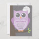 Convites feitos sob encomenda do aniversário do Dia das Bruxas com a coruja roxa no ramo de árvore.