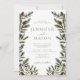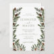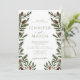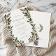 Mergulhe na sofisticação refinada com nosso elegante convite de casamento no inverno rústico boêmico em tons verdes poeirentos escuros. Apresentando uma coroa graciosa entrelaçada com galhos de pinheiros e cones de pinheiros, este convite é perfeito para as comemorações temáticas da floresta. Inclui um monograma e um código QR para o seu website de casamento, acrescentando um toque moderno.