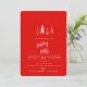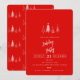 Um convite de festas de Natal com um charmoso design de pinheiros num pano de fundo vermelho vibrante. É simples, mas elegante, incorporando o espírito de feriado e dando o tom para uma celebração alegre. Perfeito para aqueles que apreciam a estética de férias clássica.